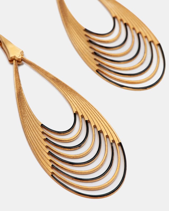 La collezione “Il Portale” non si limita a raccontare una storia, ma la incarna. Ogni pezzo, realizzato interamente in bronzo e palladio, si distingue per una complessità geometrica che cattura l’essenza del tempo. Le collane, gli orecchini e i bracciali non sono semplicemente accessori: sono porte verso altri mondi. Il disegno, composto da mille fili sottilissimi che si intrecciano, crea l’illusione di un portale, mentre sul retro di ogni gioiello è incisa una frase, una storia che potrebbe essere la loro o quella di chi lo indossa.