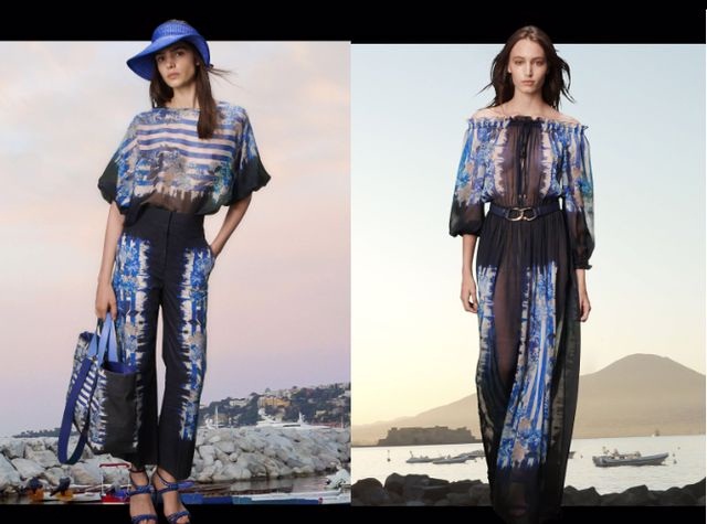 Tra i capi in vista della Resort 2021 ci sono giacche e tuxedo dai colori sgargianti o tuniche con materiali tridimensionali come il macramè. Rigore e classe accomuna anche gli chemisier da indossare come capo unico, o scamiciati coordinati con top e ampi pantaloni a vita alta. Le stampe sono protagoniste di questa collection e sono declinate in righe, quadri, tie-dye o fiori romantici utilizzando pure sovrapposizioni ad effetto patchwork.