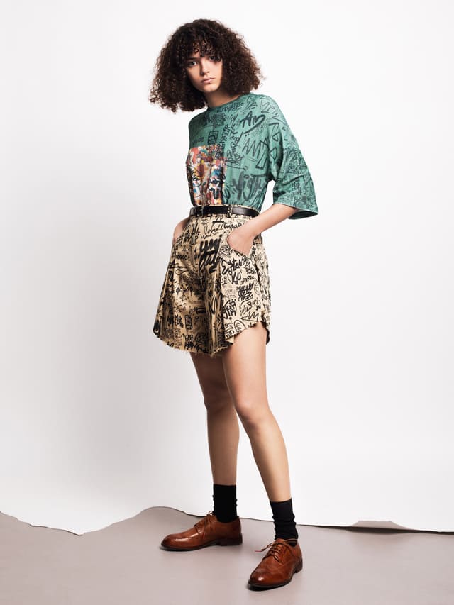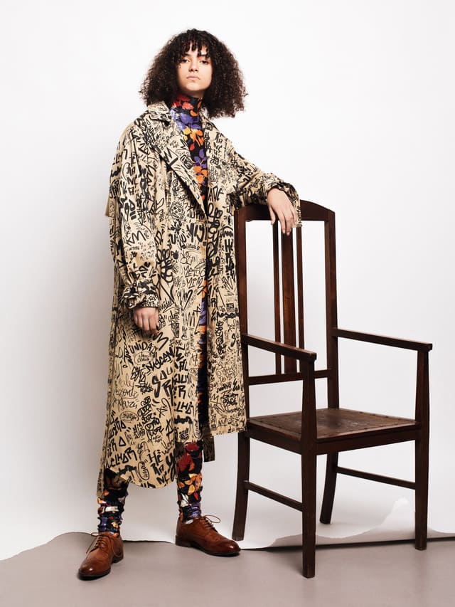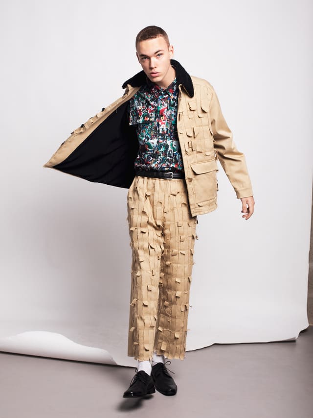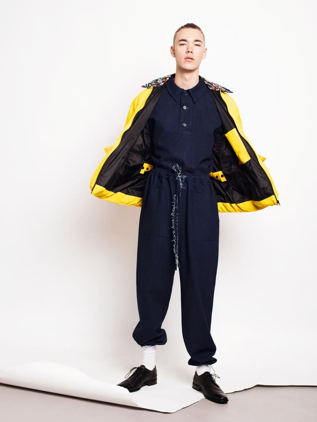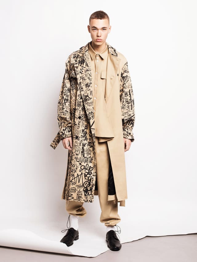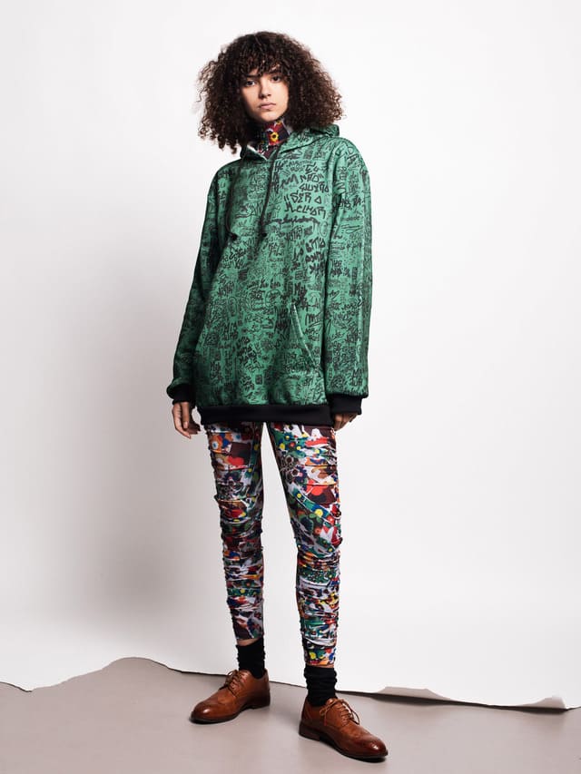 I dettagli emergono dall’idea che i vestiti “vadano da una persona all’altra” aggiustandosi al nuovo corpo, creando nuove forme e dettagli. I muri con tag e strati di poster strappati sono il motto per la manipolazione dei tessuti e le stampe della collezione, che parlano della cultura suburbana. Uno dei tag arriva dal rapper portoghese Sam the Kid Eu não quero ser o melhor, eu melhoro a fazer de mim”, che significa “non voglio essere il migliore, sono meglio quando sono me stesso”.