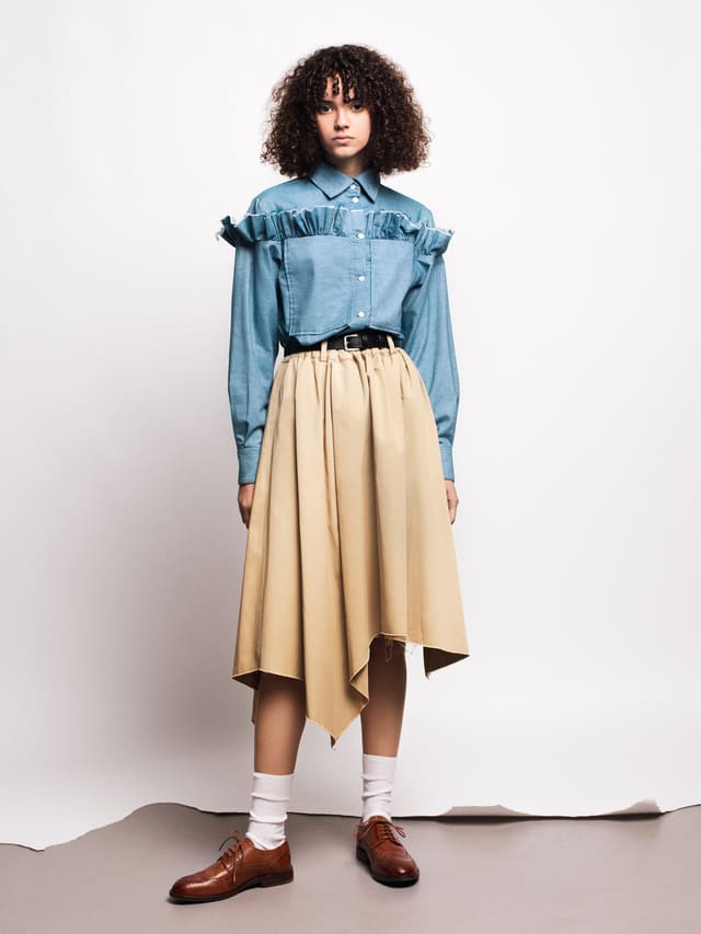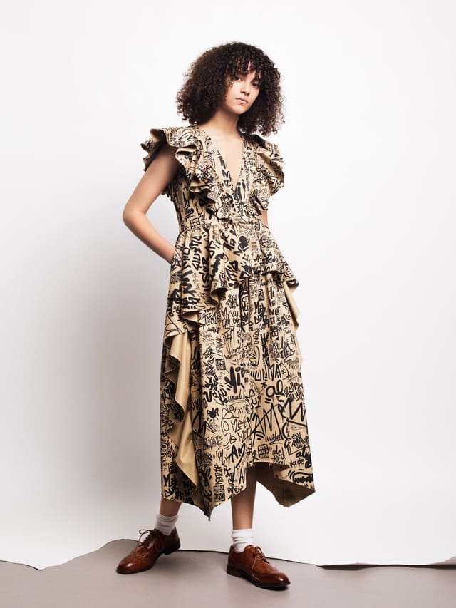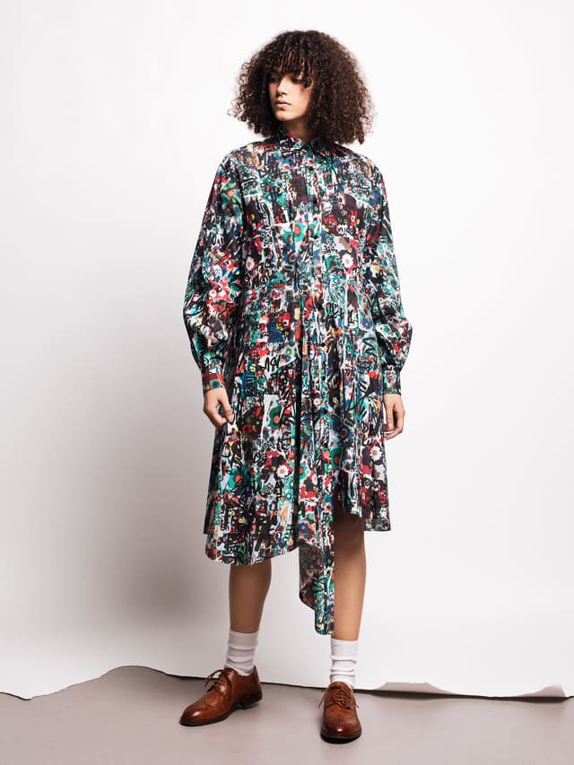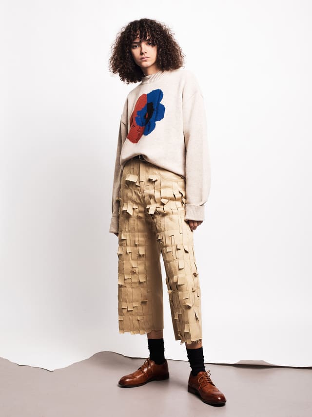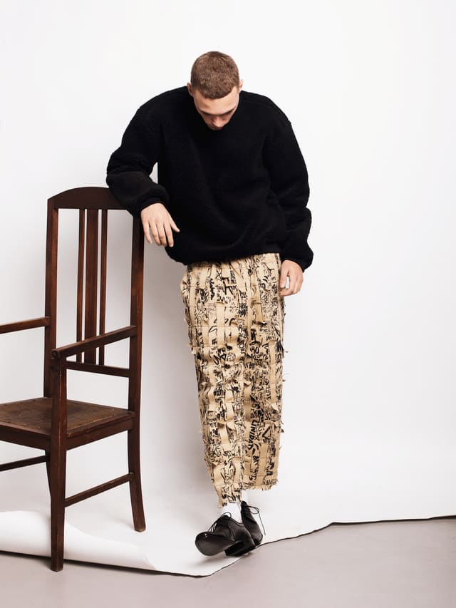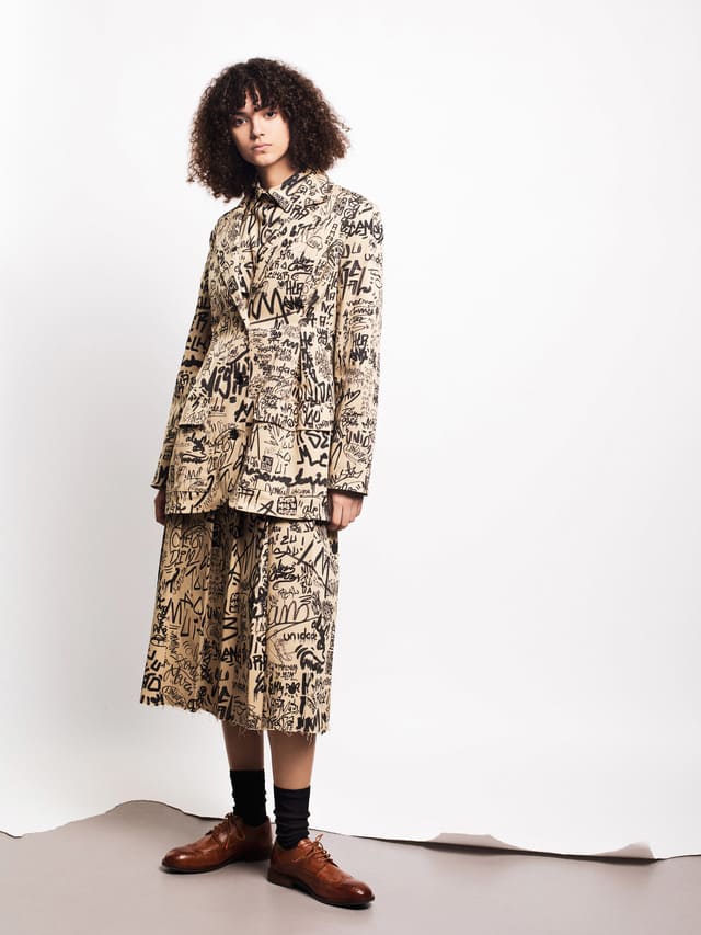 I dettagli emergono dall’idea che i vestiti “vadano da una persona all’altra” aggiustandosi al nuovo corpo, creando nuove forme e dettagli. I muri con tag e strati di poster strappati sono il motto per la manipolazione dei tessuti e le stampe della collezione, che parlano della cultura suburbana. Uno dei tag arriva dal rapper portoghese Sam the Kid Eu não quero ser o melhor, eu melhoro a fazer de mim”, che significa “non voglio essere il migliore, sono meglio quando sono me stesso”.