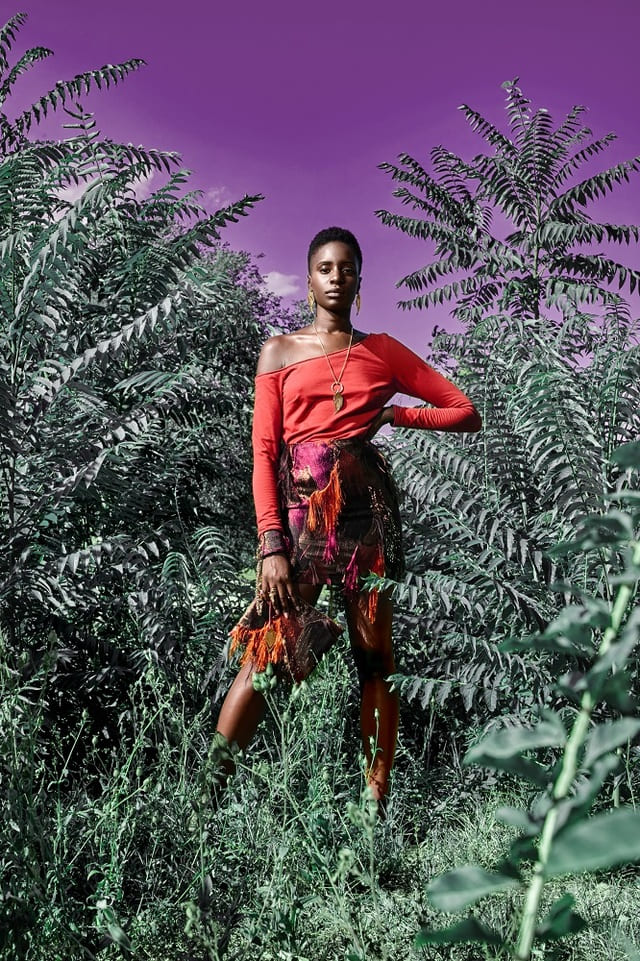 Questo luogo immaginario, in cui tutti gli esseri viventi sono in perfetta armonia e ne proteggono l’ecosistema, è la tendenza moda della collezione di Annalisa Queen. Per la collezione Autunno-Inverno 2020/2021 sono stati scelti tre tessuti le cui colorazioni richiamano le tendenze della stagione: un cotone biologico rosso ruggine, un pile in poliestere riciclato con il disegno astratto di una vegetazione tropicale e un tessuto filamentoso con una fantasia di diversi colori a richiamare l’atmosfera onirica della tendenza.