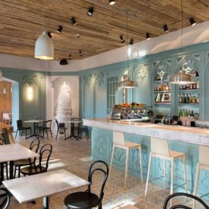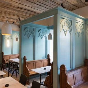 Un edificio spoglio e dismesso dell’800, una cattedrale gotica del 1400 a due passi come ispirazione. E un architetto per nulla intenzionato a prendere la storia sul serio, ma a rinfrescarla con uno stile irriverente giocato sul contrasto. Nasce così Casa Boema, bar e ristorante progettato da Cristian Corvin, nella città rumena di Cluj-Napoca, in un mix soprendente di motivi e trame diverse.