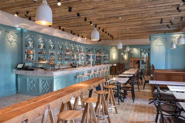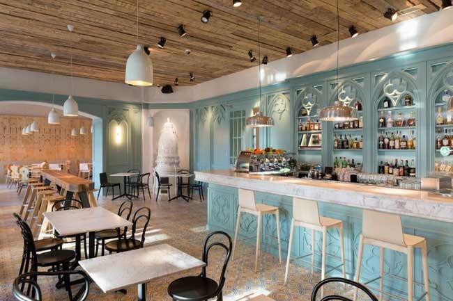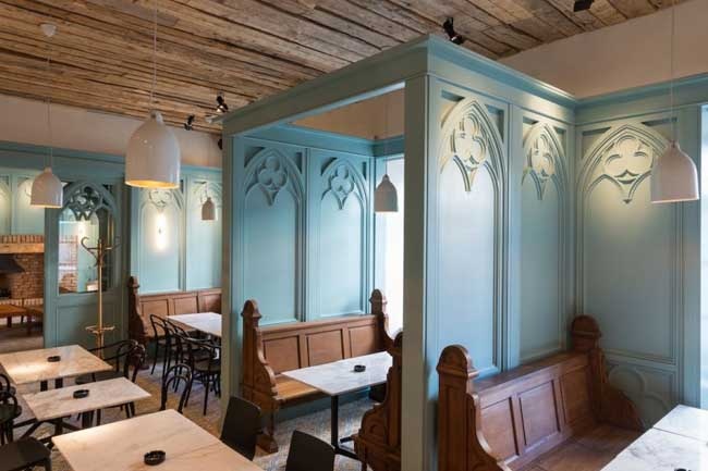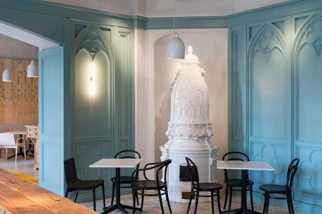 Un edificio spoglio e dismesso dell’800, una cattedrale gotica del 1400 a due passi come ispirazione. E un architetto per nulla intenzionato a prendere la storia sul serio, ma a rinfrescarla con uno stile irriverente giocato sul contrasto. Nasce così Casa Boema, bar e ristorante progettato da Cristian Corvin, nella città rumena di Cluj-Napoca, in un mix soprendente di motivi e trame diverse.