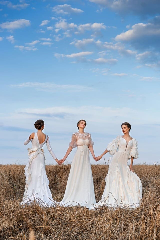 Altro brand che offre un’ottica diversa è Saleh Zini, la celebrazione dell’arte della seduzione e della eleganza in fit che hanno il potere di sospendere il tempo, abiti leggeri, avvolti in tessuti naturali, all’insegna della consapevolezza e il rispetto per l’ambiente, la sartorialità rivisitata in gesti giocosi dove tessuti e trame tradizionali come pizzo, raso, seta, tulle, georgette si mixano al concetto di stile sofisticato ed elegante che oggi sembra ormai quasi dimenticato.