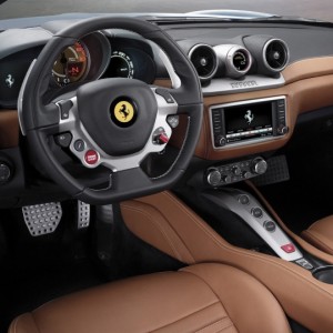 L’abitacolo della Ferrari California T è stato rinnovato per offrire il massimo comfort ai passeggeri. Utilizzando la classica configurazione 2+, i sedili sono rivestiti in pelle alla semianilina, al fine di offrire la massima durata del materiale. La plancia è stata ridisegnata per dare spazio alla nuova strumentazione di bordo, costituita dal grosso contagiri centrale, accompagnato ai lati da un monitor di bordo sulla sinistra ed il contachilometri a destra. Sulla console centrale trova spazio lo schermo 6,5 pollici touchscreen ad alta risoluzione del sistema di infotainment. In alto, in mezzo alle due bocchette di ventilazione è stato installato l’indicatore del Turbo Performance Engineer, un piccolo schermo che fornisce al guidatore indicazioni su come sfruttare tutte le potenzialità del nuovo propulsore turbo.