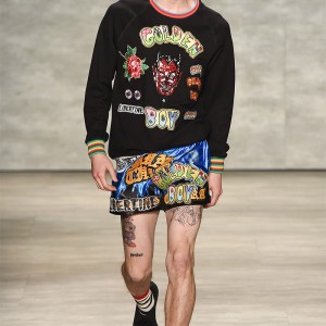 L’ultima sfilata che ha avuto luogo durante la New York Fashion Week ha delineato un uomo “Libero”, privo di stress e fuori dagli schemi; per l’appunto vediamo felpe con pon-pon colorati appiccicati addosso, giubbotti adornati come fossero murales, fantasie varie, colori accesi, e materiali diversi dal solito.