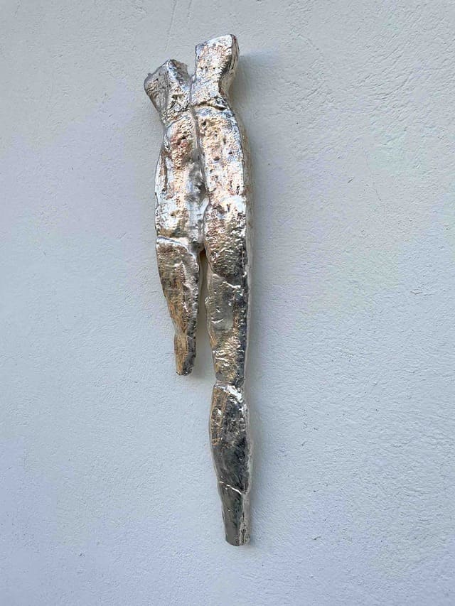 Gli ex voto hanno rappresentano fin dal paleolitico un elemento di legame col divino, cui l’uomo si rivolge alla ricerca di forza e conforto. Questa antica forma di preghiera, in cui predominante è la presenza di figure umane, è portata in mostra grazie al lavoro di Namsal Siedlecki: una scultura in argento nata da alcune scansioni 3d che l’artista ha realizzato in Francia nel 2019, a Clermont Ferrand, nei cui pozzi votivi negli anni 60 sono stati ritrovati una serie di reperti archeologici risalenti al 50 a.C. Ex-voto scolpiti in legno di faggio e gettati in acqua come offerta ad una divinità dei Galli, Maponos.