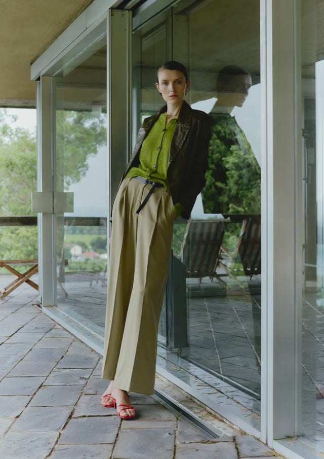 Infine, un tessuto esclusivo di cotone accoppiato caratterizza la collezione proponendo capi dall’aspetto “pelle” segnata dal tempo. Tra i filati troviamo quello sostenibile di cotone e cashmere riciclato, lavorato in maglia rasata leggerissima, oppure quello più leggero ed estivo in cotone e lino, applicato sia rasato che lavorato a costa inglese.