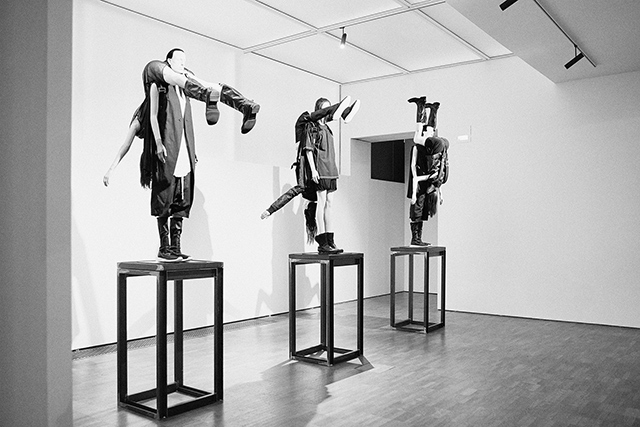 Lo fa con spigoli. Con nero. Con volumi che travolgono e forme che sfidano la logica. Con proporzioni che stravolgono il corpo e, proprio per questo, lo liberano.