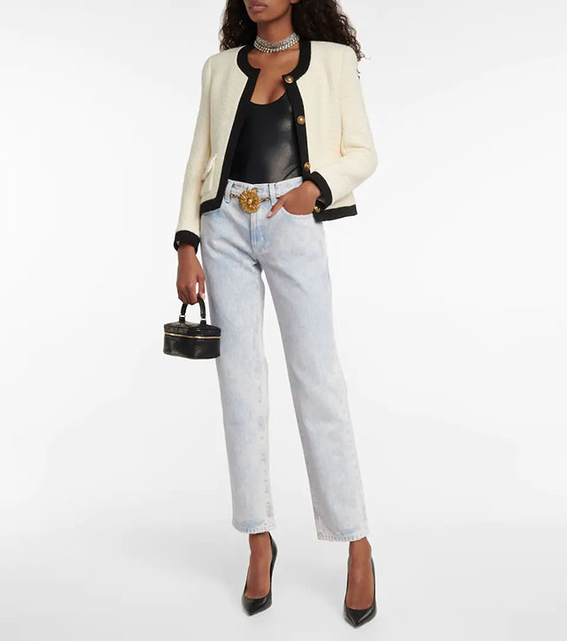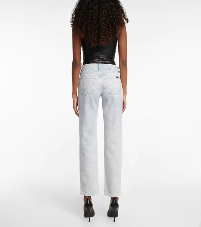 (La vita a bassa è tornata di moda, parola di Anthony Vaccarello che disegna per Saint Laurent questi jeans azzurro chiaro, Mytheresa.com)